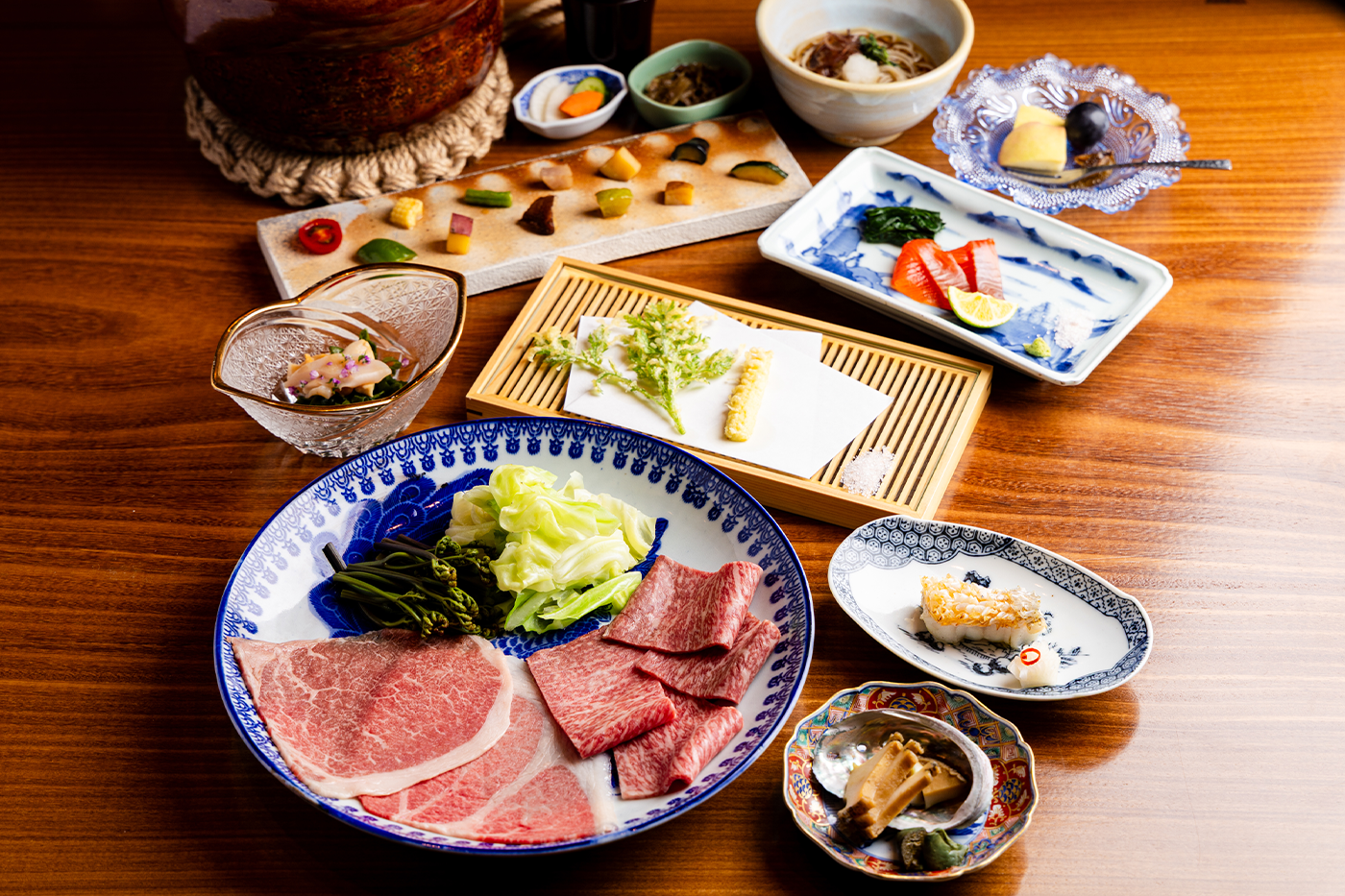 山梨県産の黒毛和牛と旬な山梨野菜を使用